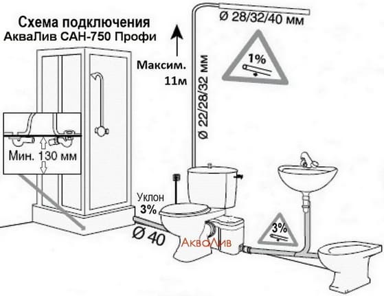Канализационная установка АкваЛив САН-750 Профи с кнопкой