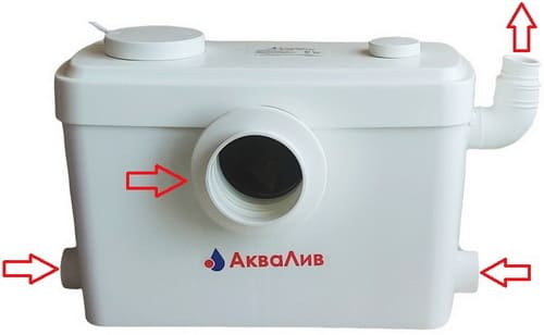 С помощью дополнительного тройника на любом входе патрубка можно подключить дополнительные санитарные приборы. Неиспользуемые входные патрубки санитарного насоса (включая вход для унитаза) закрываются пластиковыми заглушками, которые входят в комплект.